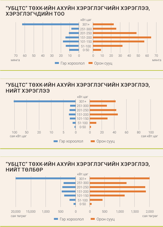Гэр хорооллын айл өрхүүд сард дунджаар нийт орлогынхоо 3.5-4 хувийг зөвхөн цахилгаанд зарцуулдаг бол, харьцангуй өндөр орлоготой орон сууцны айл өрхүүд ердөө 1 хувийг зарцуулдаг аж. Үүнээс үзвэл орлого багатай гэр хорооллын айл өрхүүд цахилгааны төлбөрөөс үүдэн илүү эмзэг байдалд орж, өрхийн санхүүд дарамт болж байна.